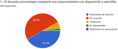 1.- El docente universitario comparte sus conocimientos con disposición y sencillez |