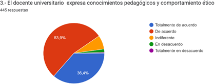3.- El docente universitario expresa conocimientos pedagógicos y comportamiento ético |