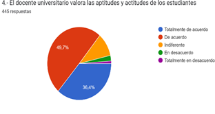 4.- El docente universitario valora las aptitudes y actitudes de los estudiantes |