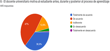 8.- El docente universitario motiva al estudiante antes durante y posterior al proceso de aprendizaje |