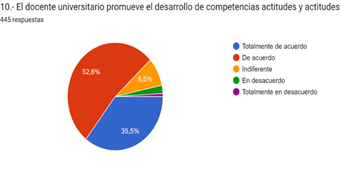 10.- El docente universitario promueve el desarrollo de competencias actitudes y actitudes |