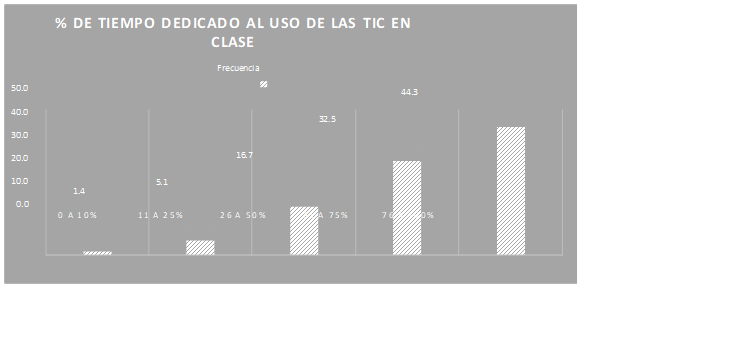 Nota: el gráfico, muestra el % de tiempo dedicado de los Docentes Universitarios al uso de las TIC en clase.