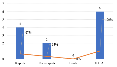 Con respecto a la rapidez con que se produjo la convergencia mediática, a partir de la propagación de la pandemia se aceleró este proceso, es evidente como en un 67% la pandemia se dio de manera acelerada. Dejando en claro que un 33% fue desarrollándose de a poco.