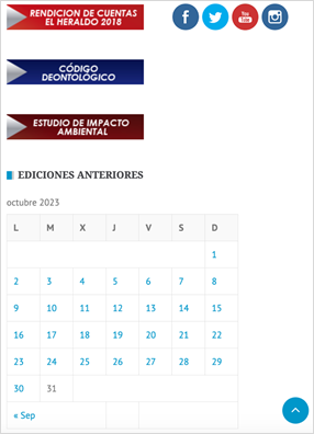 En esta sección se incluyen íconos de plataformas digitales a través de las que se puede acceder e interactuar con el medio de comunicación, además un calendario interactivo para acceder a ediciones anteriores del Diario El Heraldo.