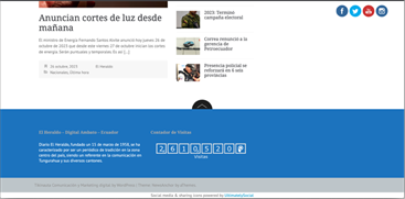 En la parte inferior de la página en la versión digital, se puede destacar nuevamente íconos de otras plataformas digitales de interacción, y además, un contador de visitas.