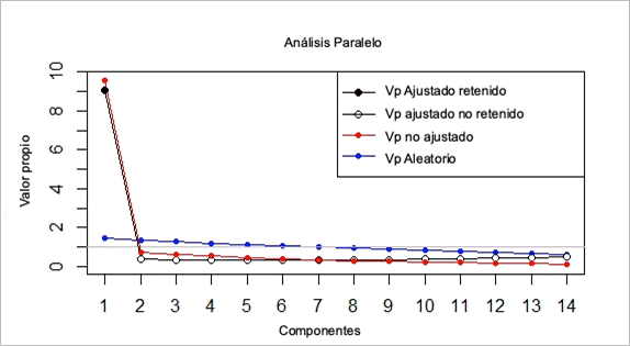 Los pasos que se siguieron en el análisis estadístico fueron: Instalación de las librerías (readxl, psych y paran), creación de objetos con la base de datos, cálculo del Alpha de Cronbach, cálculo del Omega de McDonald, creación de la gráfica de análisis paralelo, análisis Factorial exploratorio, reducción de ítems, extracción de ítems con menor correlación y análisis de la escala con los ítems que presentaron mejor comportamiento.