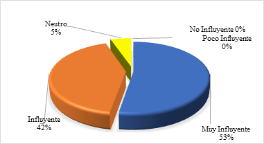El 53% ve a la plataforma Electude “muy influyente” señalando un impacto sustancial y destacando el desarrollo de habilidades prácticas. Además, el 42% afirma “influyente” una respuesta positiva en la influencia de la plataforma en el proceso de aprendizaje. El 5% señala “neutral” esto quiere decir, que para algunos alumnos la plataforma poder vista útil mas no completamente determinante en su aprendizaje práctico. Es fundamental destacar que ningún participante califica como “poco influyente” o “no influyente”, esto quiere decir que hay una mejora de conocimientos prácticos dentro de los participantes. En relación a este hallazgo, Pérez (2023) afirma que el incorporar el simulador Electude al plan de formación mecánica automotriz brinda a los aprendices la oportunidad de adquirir habilidades prácticas y profesionales.