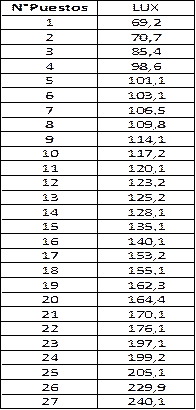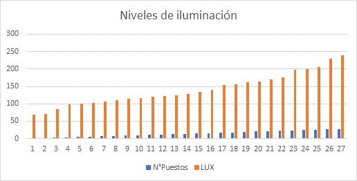Grafica No 1. Estadistica de los niveles de lumen en los puestos de trabajo.
