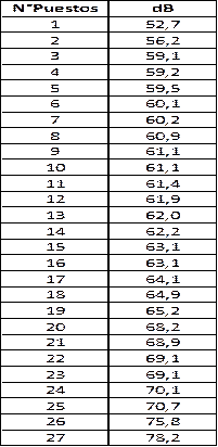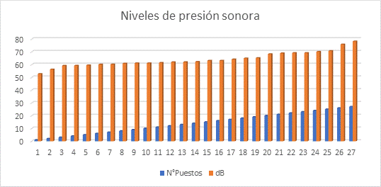 Grafica No 2. Estadistica de los niveles de presión sonora en los puestos de trabajo.