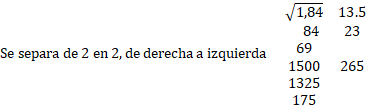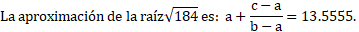 Ejemplo 1. El algoritmo se puede encontrar en Wikipedia (2016) y en Black, (2019), donde se explican los 7 pasos para calcular la raíz precisa de cualquier número, cada paso está explicado en 4 o 6 renglones (3 cuartillas aproximadamente), es un poco extenso, por eso proponemos un método aproximado más simple. A continuación, se expone un ejemplo.