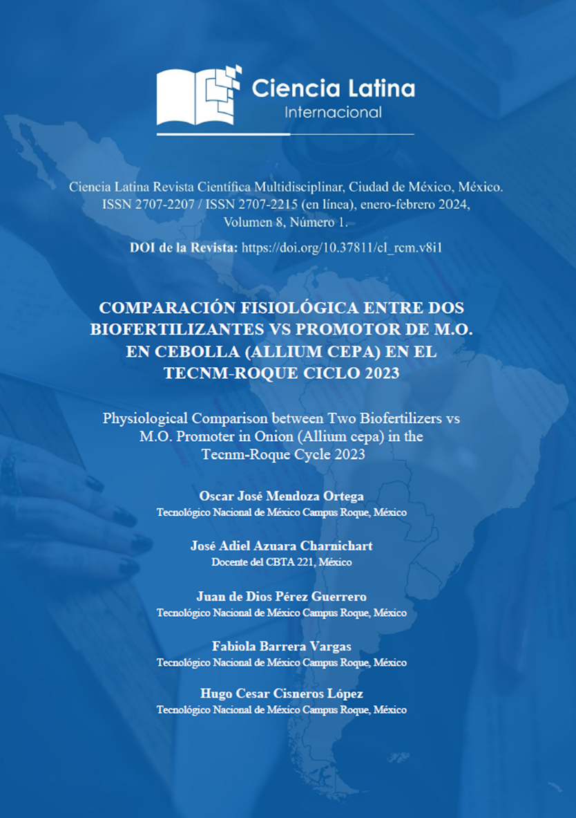 En este artículo se hace la comparación de dos biofertilizantes contra un promotor de materia orgánica en el cultivo de cebolla (criolla) con aplicaciones vía drench en el transcurso de su desarrollo fenológico, para comparar el desarrollo fisiológico y rendimiento del cultivo, esto se realizó en el Instituto Tecnológico de Roque en el ciclo verano – otoño 2023. El proyecto se desarrolló en el área orgánica del TecNM-Roque con un área de 250 m2 donde se realizaron 25 surcos y se dividieron para así colocarles a cada uno un tratamiento, los cuales fueron T1 Trichoderma 10 g/1L, T2 Promotor de materia orgánica 10 ml/1L, T3 Micorriza 10 g/1L, T Tradicional (Humus de lombriz, Crecento y Agro-K). El objetivo de esta investigación es ver la eficiencia y eficacia del promotor de materia orgánica (M. O.) en comparación de los dos biofertilizantes y la forma tradicional del manejo agronómico de la cebolla, se evaluará como producto final el desarrollo físico de la planta y peso del bulbo como también el diámetro polar y ecuatorial del mismo. A lo largo de esta investigación se realizaron tres muestreos destructivos para estar midiendo y comparando el desarrollo de la planta y ver el desarrollo del bulbo e inocuidad del cultivo.