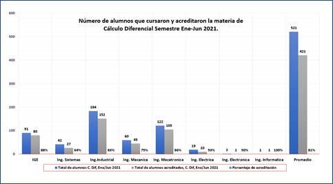 Figura 5. Número de alumnos que cursaron y acreditaron la materia de Cálculo Diferencial Semestre Ene-Jun 2021.