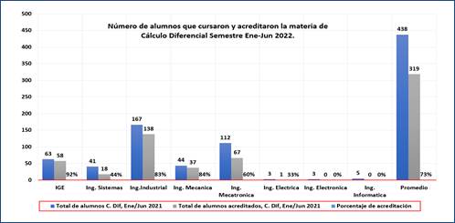 Figura 7. Número de alumnos que cursaron y acreditaron la materia de Cálculo Diferencial Semestre Ene-Jun 2022.