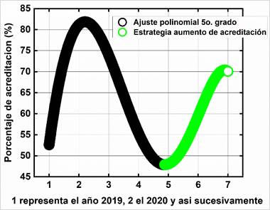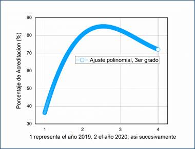 Figura 11. Muestra el ajuste polinomial aplicado al porcentaje de acreditación.