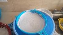 La arcilla blanca se tamizó con dos diferentes coladores de cocina, al ser la arcilla pura no tenía mucho sedimento ni impurezas.