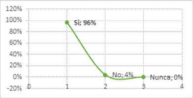 Las encuestas aplicadas reflejaron que un 83% de los estudiantes en la IES no tienen un impulso emprendedor, por otro lado un 17% afirma que si cuenta con un impulso emprendedor, pero sin identificar resultados.
