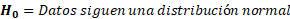 Debido a que se dispone de una muestra pequeña (n>30), para corroborar la normalidad de la variable cualitativa, la hipótesis se sustenta en el test de normalidad de Shapiro-Wilk, donde se plantea la siguiente hipótesis: