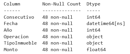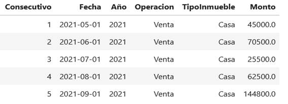 Los datos que se utilizarán para el modelo de entrenamiento se proporcionan por la inmobiliaria Asesoría Sweet Home en la cual describe los inmuebles más vendidos de los últimos tres años(2021, 2022 y 2023). Se solicitarán en un formato Layout ventas.xlsx con las siguientes columnas:
