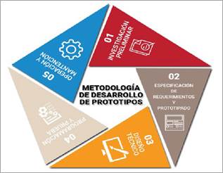 Para el desarrollo de este proyecto se utilizó la metodología de prototipos, esta metologia permite que todo el sistema o algunos de esas partes sea creadas rápidamente para la comprensión y la claridad de todos los aspectos que surjan, y los desarrolladores, usuarios y clientes acuerden el producto resultante durante todo el proceso de desarrollo (Irida Medina, 2018). El enfoque de este se basa en el desarrollo de prototipos o la implementación inicial y sometiéndolo a los comentarios de los usuarios, continúe refinando y repitiendo estos pasos hasta que se cree un sistema adecuado y incluye los requisitos necesarios para ser desarrollado.