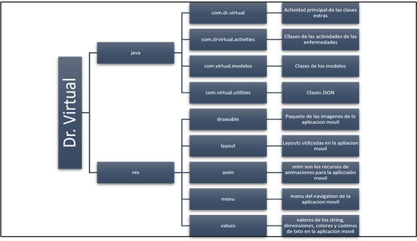 A continuación, en el diagrama 6, se describe la estructura de la aplicación y una breve descripción de los directorios de aplicación móvil.