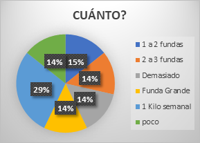 En la figura 4 se muestra que en los talleres de confecciones de la ciudad de Babahoyo el 65% desconoce la cantidad de desecho textil que producen semanalmente, demostrando la falta de espacios que promuevan el diseño sostenible (Pesántez Calle, 2016); mientras que tan solo el 35% de los talleres de confección conoce la cantidad de desecho textil que producen semanalmente, de este grupo detallado en la figura 5, se conoce que el 29% de los talleres sacan alrededor de 1 kg de desperdicio por semana, siendo inferior a lo reportado por (Henao Ortiz , 2015) que alcanzó aproximadamente valores entre 70 y 105 kg en el mismo período de tiempo; el 15% de los talleres saca de 1 a 2 fundas de desecho textil en la semana; un grupo de talleres saca de 2 a 3 fundas por semana (14%), otro grupo saca fundas grandes de desecho por semana (14%), un grupo de talleres saca demasiado desecho textil por semana (14%), y otro grupo (14%) saca poco desecho textil (Figura 5).