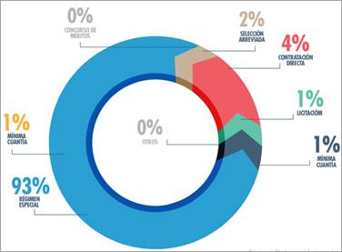 Para las campañas territoriales del año 2015, en la modalidad de contratación más usada para la selección de contratistas fue la contratación directa, seguida por la contratación a través de regímenes especiales, a saber: