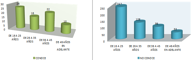 En cuanto al rango de edades, el 90% de las personas que oscilan entre los 16 y 25 años no conocen el procedimiento, o programas establecidos de seguridad y educación vial el 88% de los de 26 a 35 años, el 81% de 36 a 45 años y el 84% de los de 46 años en adelante, de lo cual se deduce que la edad tampoco es factor que incida en el desconocimiento ya que dichos programas de seguridad vial no son debidamente aplicados.
