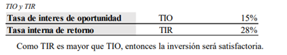 Tasa interna de retorno (TIR). “La tasa interna de retorno (TIR) es una tasa de rendimiento utilizada en el presupuesto de capital para medir y comparar la rentabilidad de las inversiones” (Sapag, 2011, p.231). La tasa interna de retorno es un indicador para medir la viabilidad de una inversión o un proyecto en términos de rentabilidad o ganancia. Los criterios de decisión para la TIR son los siguientes:
