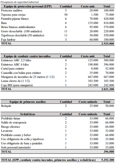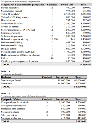 En todos los casos, la realización de un proyecto supone unos costos y la disponibilidad de recursos. Para este proyecto se debería buscar los recursos necesarios para costear los gastos que demandan la adquisición de equipamientos y maquinarias, la construcción del edificio que albergará a las dependencias de la planta, el pago de servicios, permisos correspondientes y el salario del personal.