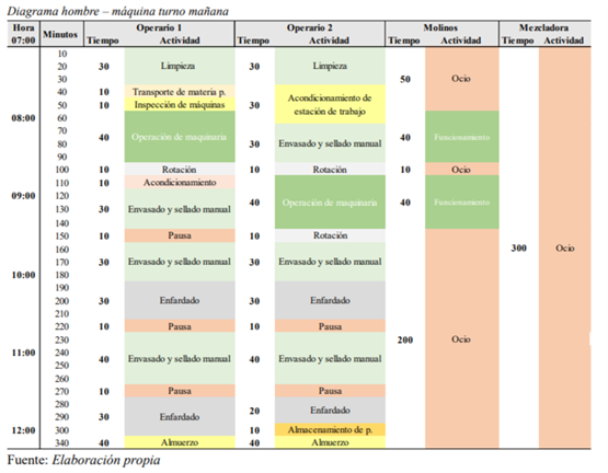 La capacidad proyectada se dimensionó a partir del diagrama hombre-máquina, optimizando los tiempos de producción contemplando la tecnología, procesos y mano de obra planificada