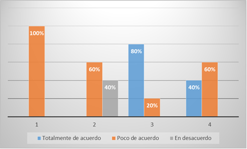 De la encuesta realizada a los 5 docentes se obtienen los siguientes resultados: