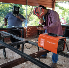 Figura 3. Estudiante soldando la estructura donde se colocan los paneles |