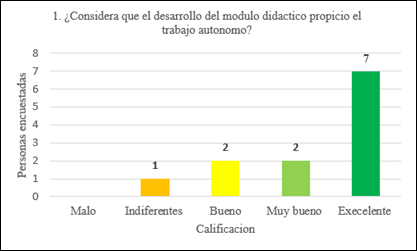 En acuerdo con Vilcatoma y Bustamante (2008) se puede decir que los módulos didácticos propician y facilitan la enseñanza y aprendizaje de los estudiantes, generando cambios en ellos. Y en nuestro caso esto se puede ver reflejado en el momento que los estudiantes se emergieron cada vez más en el desarrollo del módulo de enseñanza su disposición fue mayor.