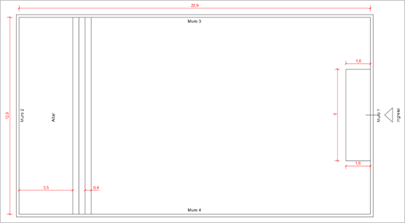 Al reemplazar la superficie de los muros con 80 paneles absorbentes reducimos la resonancia acústica en el interior del templo de 17.16 [s] a 5.07 [s] = Tr.