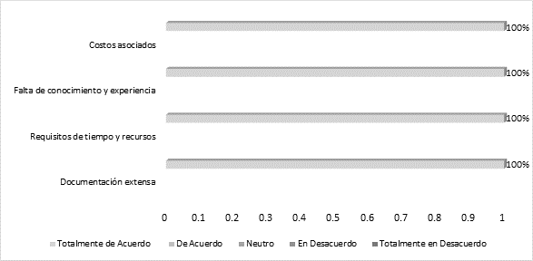 La coincidencia del 100% de los empresarios del sector industrial en ciertas dificultades burocráticas para acceder a la certificación ISO9001 proporciona una perspectiva valiosa y unificada sobre los desafíos específicos que enfrentan en este proceso.