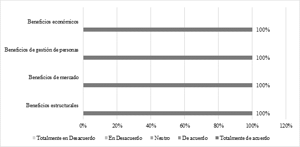 Los datos de la figura 4 sugieren que, a pesar de que la mayoría de los empresarios en el sector industrial no cuentan con la certificación ISO9001, hay un consenso general en el reconocimiento de varios beneficios asociados con la certificación en diversas áreas: