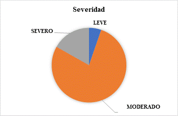 La severidad con la que los síntomas fueron evidenciados, se calcularon gracias a las escalas de WODD-DOWNES y WANG que evalúan el esfuerzo respiratorio y la alteración de la frecuencia respiratoria, ubicándolos en tipos de crisis según el puntaje: leve (1-3 puntos), moderados (4-7 puntos), y graves (8-14 puntos), en nuestro estudio obtuvimos un total de 74 pacientes (77.9%) con crisis moderadas que se sometieron a la OAF.