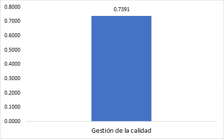 El valor del constructo "gestión de la calidad" es 0,7391 (Figura 4), indicando una percepción positiva pero ligeramente inferior a la máxima expresión de la frecuencia "siempre".