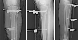 La fijación externa mantiene los extremos de la fractura en estrecha aposición y estables para favorecer la osteogénesis, en fracturas abiertas con pérdida ósea significativa se prefiere la fijación externa, ya que causa menos alteración de los tejidos blandos y su uso es temporal (5).