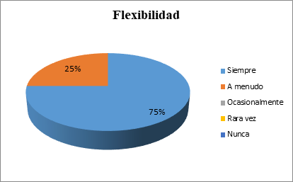 Análisis: Según se puede evidenciar el 75% de los docentes consideran que siempre la flexibilidad es importante en el niño del nivel inicial, mientras que el otro 25% considera que a menudo.