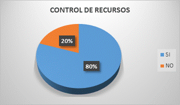 Es importante resaltar que el 80% de los encuestados dijeron que la empresa si tiene control respecto a los recursos utilizados en la logística como por ejemplo el inventario de la bodega, despacho de combustible, itinerarios, movilizaciones, permisos y tasas actualizadas, entre otros. Y apenas el 20% comento que a la empresa le falta controlar más estos recursos.