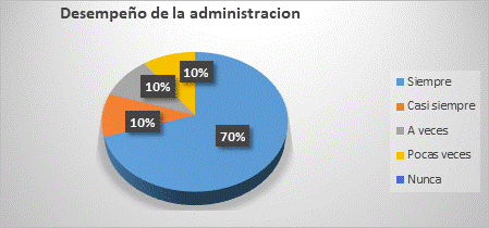 El 70% de las personas encuestadas indico que la empresa tiene una buena administración ya que siempre está preocupada por mantener el orden y control en cada actividad a realizar, mientras que una minoría del 30% respondió que a veces o pocas veces hay falencias en el desempeño de la administración como lo mostro la figura 6.