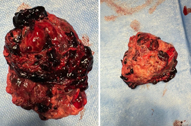 Se realiza de manera urgente laparotomía para extracción de mola hidatiforme completa (figura 2).