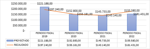 De acuerdo con los datos del SRI de los periodos entre 2019 al 2022, se puede visualizar un decrecimiento significativo, debido que en el 2019 a 2021 se redujo las recaudaciones de personas naturales con una diferencia de $54.100.00 dólares americanos, mientras que en el 2022 esta cifra aumentó a los 181.431 dólares, valores que sirven para la inversión social o cubrir pagos que el gobierno está destinado a utilizar.