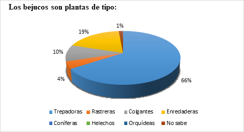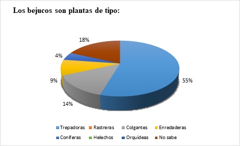 La Figura 3 sirve de ejemplo para indicar también un amplio margen de mejora en lo que tiene que ver con los conocimientos ambientales sobre el bejuco. Esto a pesar de que un porcentaje alto de padres viven en parcelas y tienen el contacto directo con las plantas en cuestión.