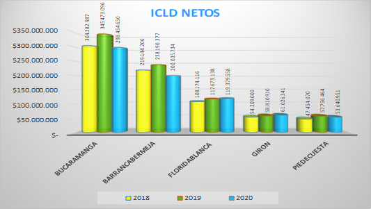 En términos generales se evidencia que el municipio de Bucaramanga y Barrancabermeja tienen los valores más alto en los ICLD netos y que fueron los municipios que tuvieron una disminución más elevada en valores de los ICLD netos para los años en análisis. Por otra parte, se evidencia que los municipios de Floridablanca y Girón presentaron un aumento en los ICLD netos en pro de brindarles una mayor inversión social a sus habitantes.