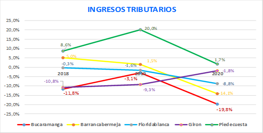 Después de realizar el análisis de la información financiera de las entidades territoriales se observa que los municipios necesitan los ingresos tributarios relacionados con los impuestos establecidos, teniendo en cuenta que las variaciones de estos fueron negativas en todos los municipios, excepto en Piedecuesta. Por lo anterior, se plantean diferentes estrategias para mejorar el recaudo en lo relacionado con los ingresos tributarios, tales como: