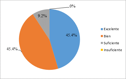 En cuanto al dominio de los temas que desarrolló durante las Jornadas de Práctica Educativa, se puede resaltar que 18 estudiantes que representan el 45.4% obtuvieron una aceptación excelente en este rubro al igual que el indicador de bueno, y el 9.2% (ocho alumnos) una evaluación de suficiente. Los docentes titulares observaron en el desempeño académico de los normalistas que había dominio de contenidos en los curso de Español. Lengua Materna, Matemáticas, Inglés e Historia ya que todos los días al momento de desarrollar su secuencia lo realizaban con plena seguridad y se reflejaba en que los estudiantes adquirieron un aprendizaje significativo.