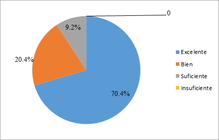 Respecto al uso de material didáctico durante las Jornadas de Práctica, los docentes titulares mencionan que el 70.4% (31 alumnos) cumplieron de manera excelente en la elaboración y aplicación de diferentes materiales educativos en las aulas, el 20.4% (9 discentes) fueron señalados en un rango bueno, mientras que el 9.2% (4 normalistas) cumplieron de manera suficiente las expectativas de sus docentes titulares. Por lo que una vez más se corrobora la idea de que el hecho de realizar materiales educativos para tratar contenidos en el aula fomenta la motivación y gusto por alcanzar un aprendizaje significativo.