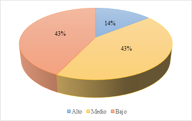 Con la encuesta que se ejecutó a los estudiantes, estos demostraron con un 43% que poseen un nivel medio con respecto a la motivación para recibir las clases de álgebra; de la misma forma, otro 43% indica que tiene un nivel bajo y tan solo un 14% posee un nivel alto. Por esta razón, es importante incursionar en nuevas modalidades de enseñanza que permita elevar la motivación de los estudiantes frente a las clases de álgebra y por ende existirá mayor cumplimiento de las tareas académicas.